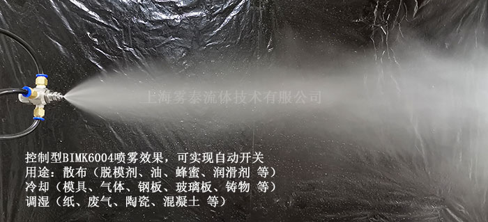 可用于噴脫模劑、除臭劑、油、表面處理劑、防銹劑、潤(rùn)滑劑、蜂蜜、防蟲劑、尿素水等。冷卻:模具冷卻、氣體冷卻、鋼板冷卻、鋼片、鑄物、車體、涂裝物、玻璃板、塑膠等。BIMK、CBIMV8004、BIMK6004S303+NS303, BIMJ小體積微霧噴頭與普通型空氣霧化噴嘴大小對(duì)